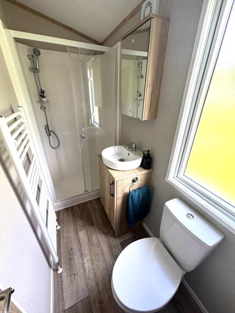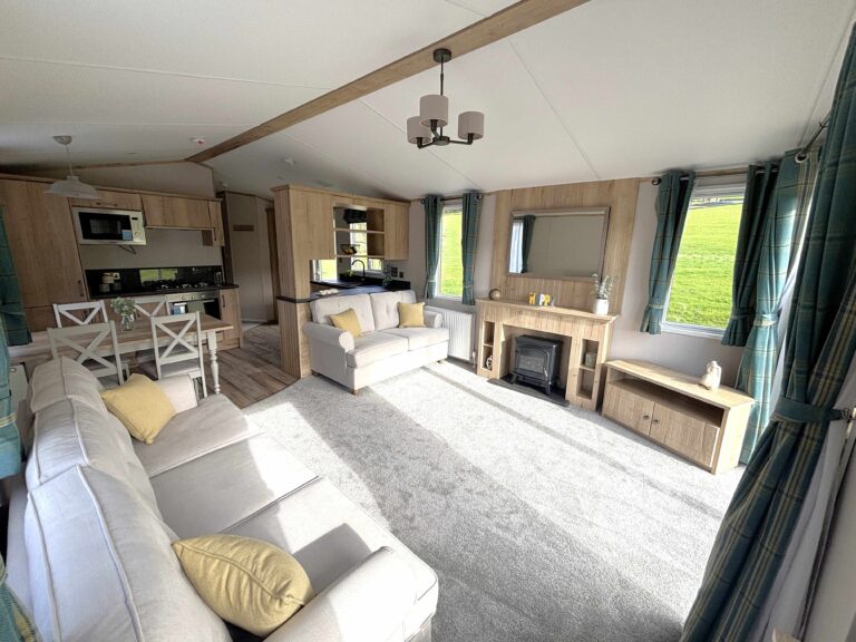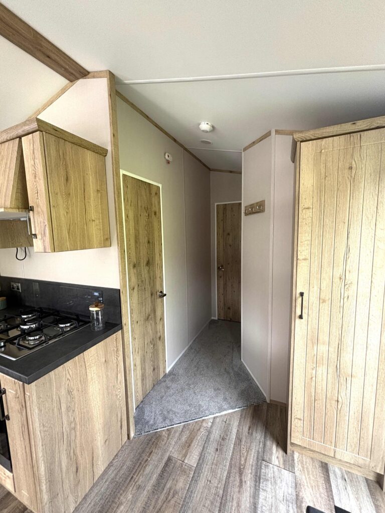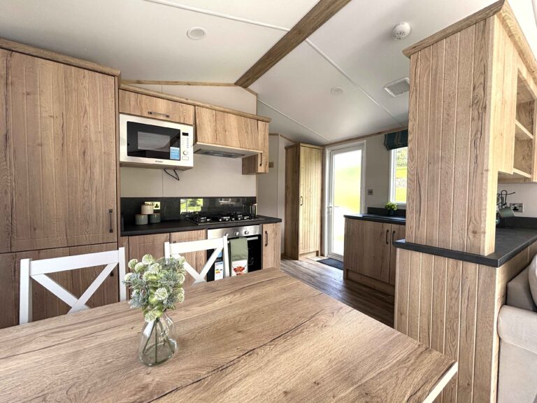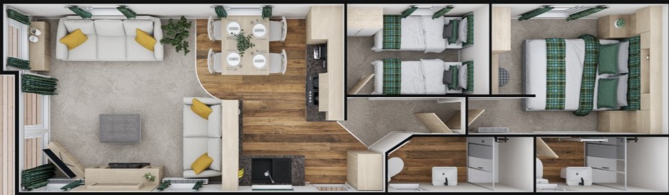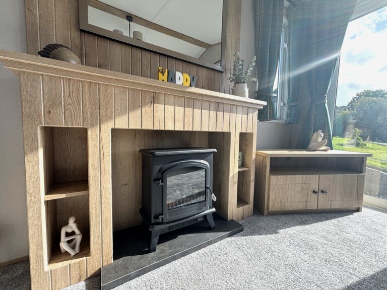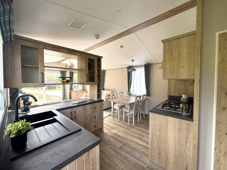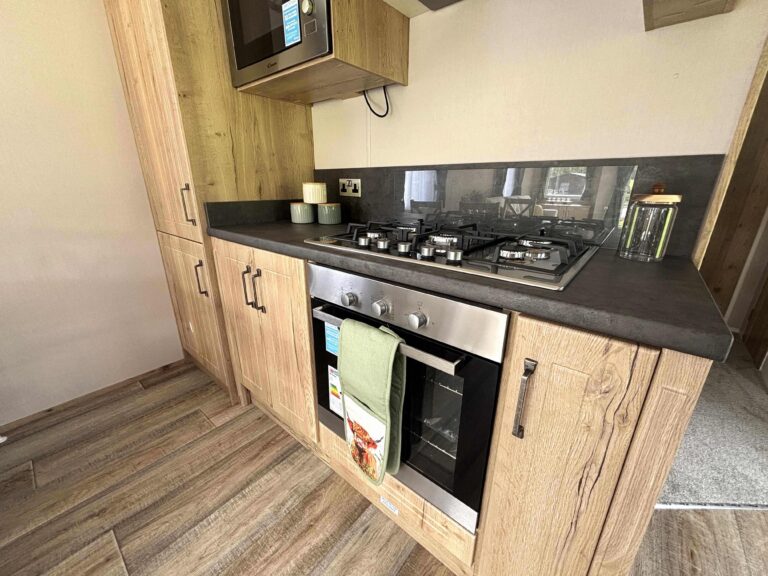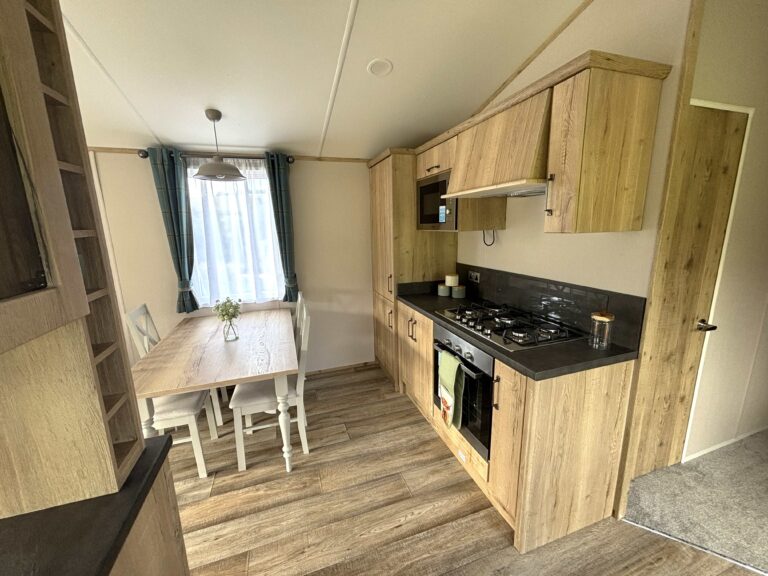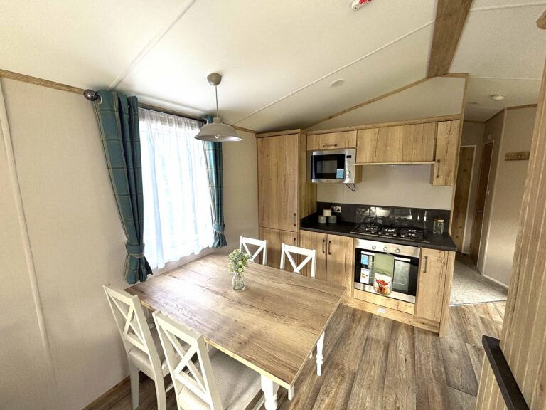 Atlas Debonair-10 NEW This Atlas Debonair-10 offers a perfect blend of modern amenities and traditional charm, providing a comfortable and stylish retreat. Sleeps Size 40ft x 13ft Park Oakwood Valley Lodges Key features Front decking, skirting and steps includedOpen plan living areaFeature fireplaceCountry style interior themeMaster bedroom with vanity unit & en-suiteDouble glazed & central heatingPlenty of storage Description The Debonair interior embodies the essence of country home living. The lounge is furnished with freestanding 2 and 3 seater sofas adorned with cosy fabrics and contrasting throw cushions. The lounge also boasts a log-burner style electric fire set within a traditional mantelpiece. The freestanding farmhouse style dining table is accompanied by matching chairs that seamlessly carry on the country theme throughout the space. The holiday home features a charming farmhouse-style kitchen equipped with an integrated oven, 5-ring gas hob, electric cooker hood, and integrated fridge/freezer. The kitchen units are a combination of standard and glass-fronted doors, adding a touch of elegance to the space. Moving on to the master bedroom, you will find traditional styling with fitted furniture and a king-size bed. The room also includes a vanity unit with a mirror and stool, allowing for convenience and comfort. Natural light fills the room through the large three-quarter height window, creating a bright and inviting atmosphere. The bedroom is complete with an en-suite bathroom, featuring a shower, washbasin and WC for added convenience. The second bedroom is equipped with two single beds and a built-in wardrobe with overbed storage. The main bathroom boasts a spacious shower cubicle, a stylish countertop washbasin with a storage cabinet below, a heated towel rail, WC, and an external extractor fan. Also, included within the price is front decking, skirting and steps. Overall, this holiday home offers a perfect blend of modern amenities and traditional charm, providing a comfortable and stylish retreat for all to enjoy.