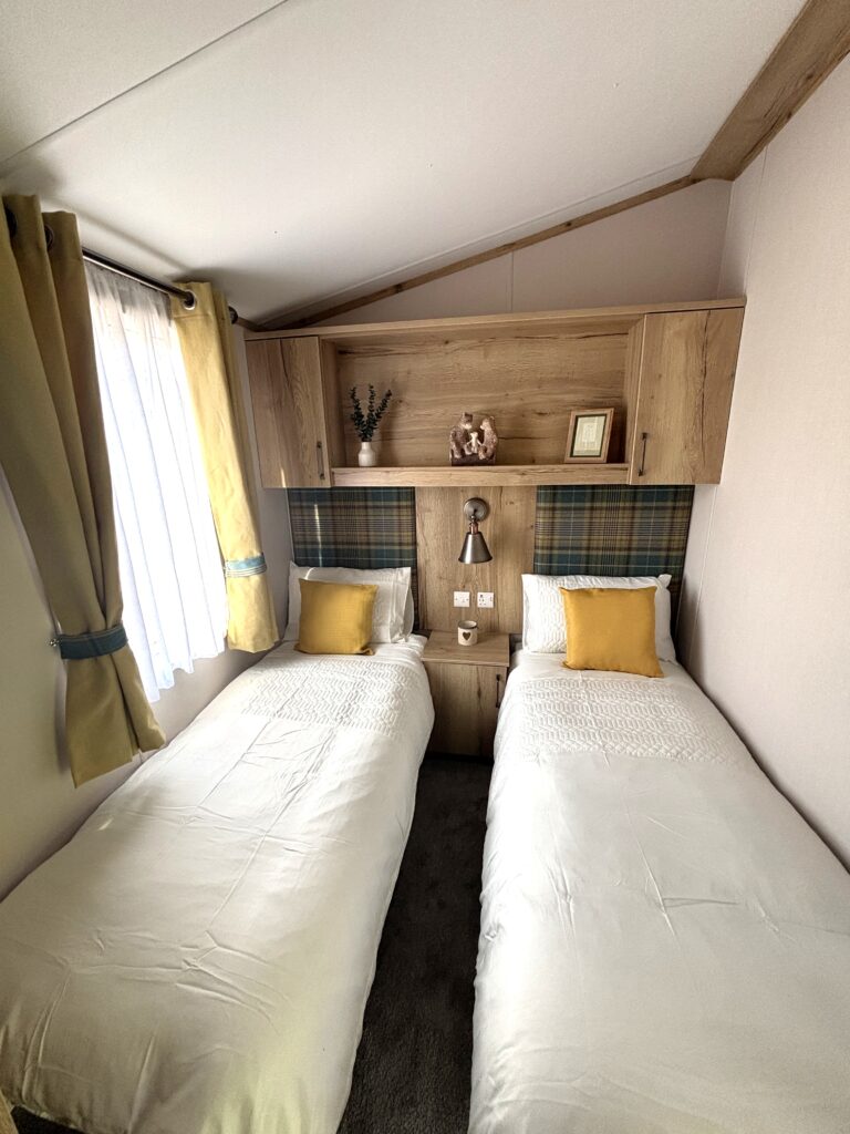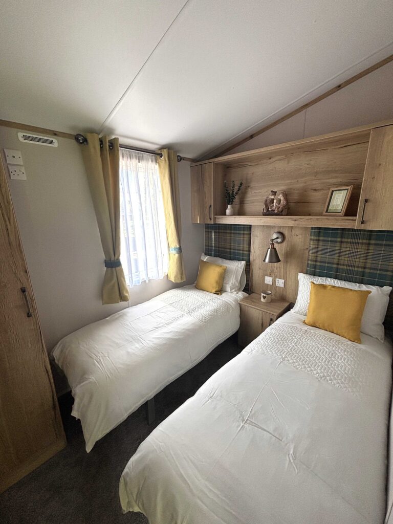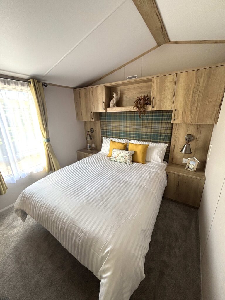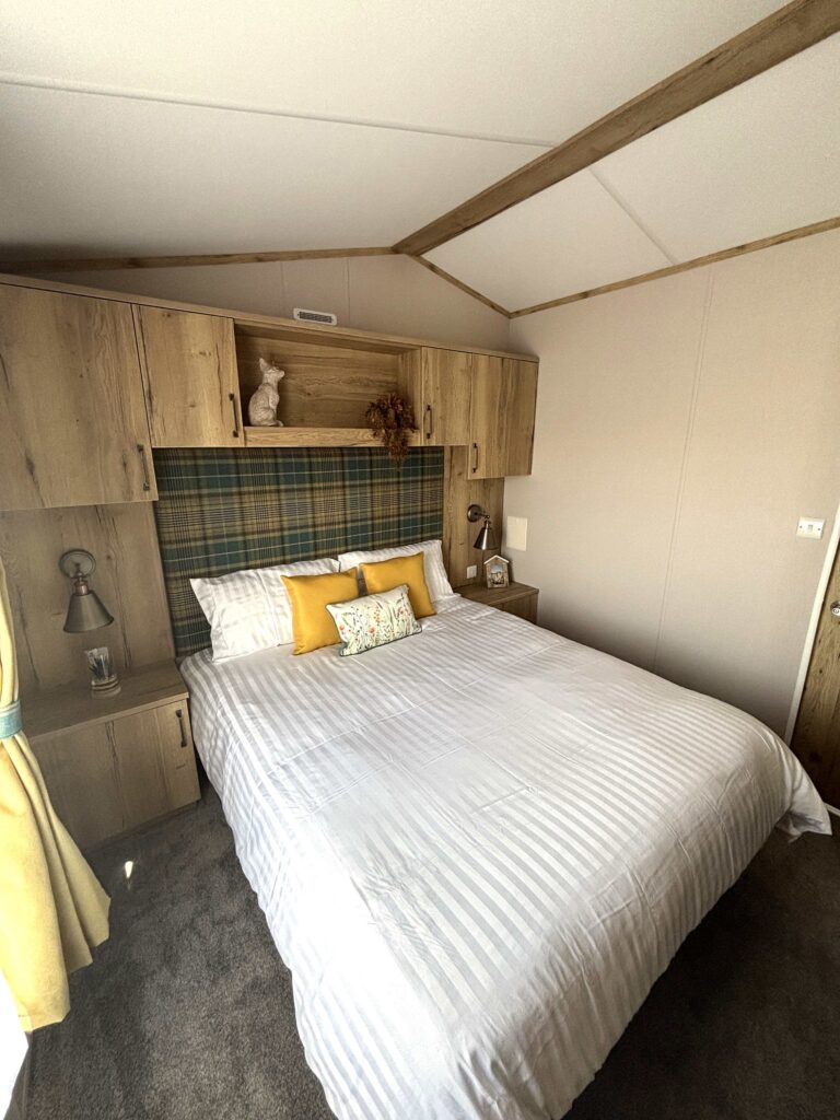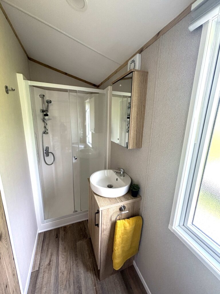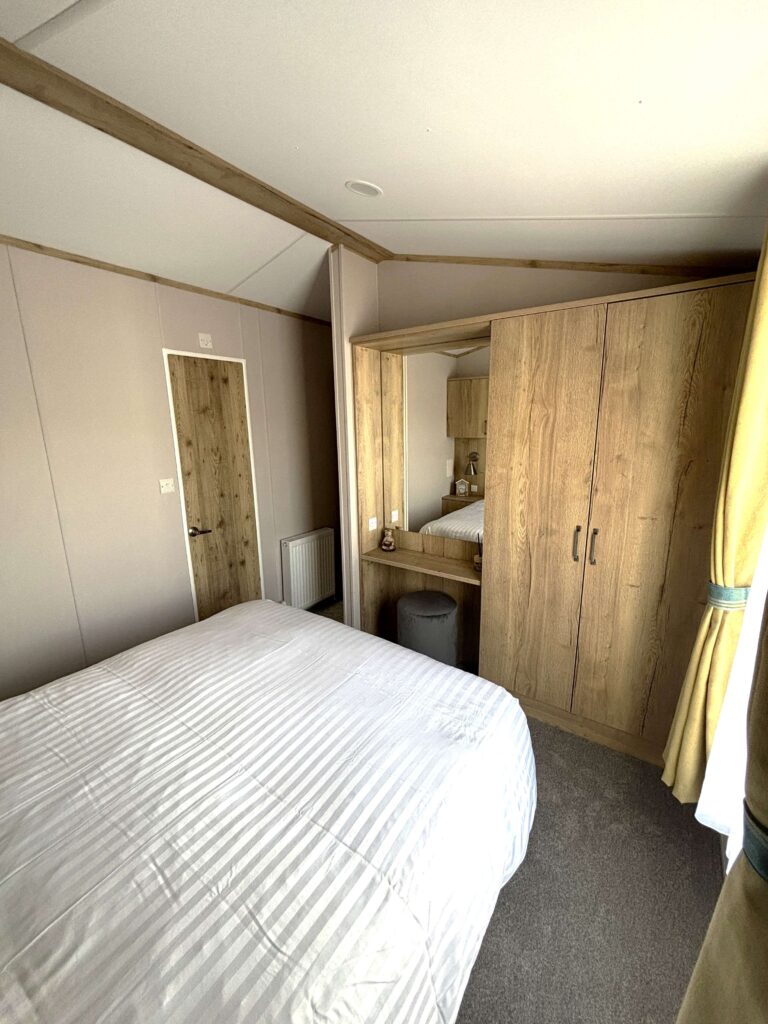 Atlas Debonair-10 NEW This Atlas Debonair-10 offers a perfect blend of modern amenities and traditional charm, providing a comfortable and stylish retreat. Sleeps Size 40ft x 13ft Park Oakwood Valley Lodges Key features Front decking, skirting and steps includedOpen plan living areaFeature fireplaceCountry style interior themeMaster bedroom with vanity unit & en-suiteDouble glazed & central heatingPlenty of storage Description The Debonair interior embodies the essence of country home living. The lounge is furnished with freestanding 2 and 3 seater sofas adorned with cosy fabrics and contrasting throw cushions. The lounge also boasts a log-burner style electric fire set within a traditional mantelpiece. The freestanding farmhouse style dining table is accompanied by matching chairs that seamlessly carry on the country theme throughout the space. The holiday home features a charming farmhouse-style kitchen equipped with an integrated oven, 5-ring gas hob, electric cooker hood, and integrated fridge/freezer. The kitchen units are a combination of standard and glass-fronted doors, adding a touch of elegance to the space. Moving on to the master bedroom, you will find traditional styling with fitted furniture and a king-size bed. The room also includes a vanity unit with a mirror and stool, allowing for convenience and comfort. Natural light fills the room through the large three-quarter height window, creating a bright and inviting atmosphere. The bedroom is complete with an en-suite bathroom, featuring a shower, washbasin and WC for added convenience. The second bedroom is equipped with two single beds and a built-in wardrobe with overbed storage. The main bathroom boasts a spacious shower cubicle, a stylish countertop washbasin with a storage cabinet below, a heated towel rail, WC, and an external extractor fan. Also, included within the price is front decking, skirting and steps. Overall, this holiday home offers a perfect blend of modern amenities and traditional charm, providing a comfortable and stylish retreat for all to enjoy.