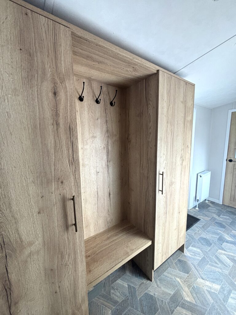 Upon entering the Norwood, guests are welcomed by a convenient bench seat equipped with coat hooks, ideal for removing shoes and storing outerwear.